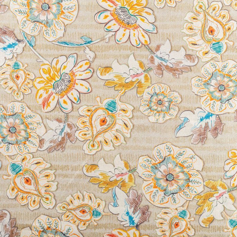 Льняная плательно-рубашечная ткань с добавлением бемерии в песочном оттенке с растительным принтом, выполненным в карандашной технике Материал прочный, с выразительной матовой рельефной поверхностью, полотняным плетением, хорошо держит форму, мягкий на ощупь, пластичный, отлично драпируется. Прекрасно подойдет для пошива летних платьев, сарафанов, юбок, рубашек, брюк и шорт.
