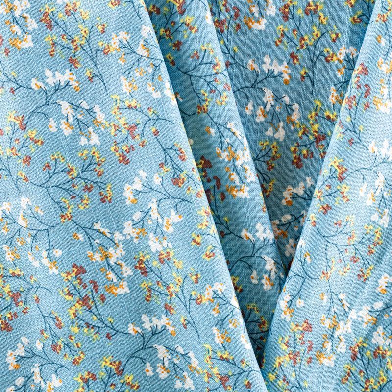 Льняная плательная ткань с добавлением вискозы серо-голубого цвета с растительным принтом. Материал прочный, с выразительной матовой рельефной поверхностью, полотняным плетением, хорошо держит форму, мягкий на ощупь, пластичный, отлично драпируется. Прекрасно подойдет для пошива летних платьев, сарафанов, юбок, рубашек, брюк и шорт.