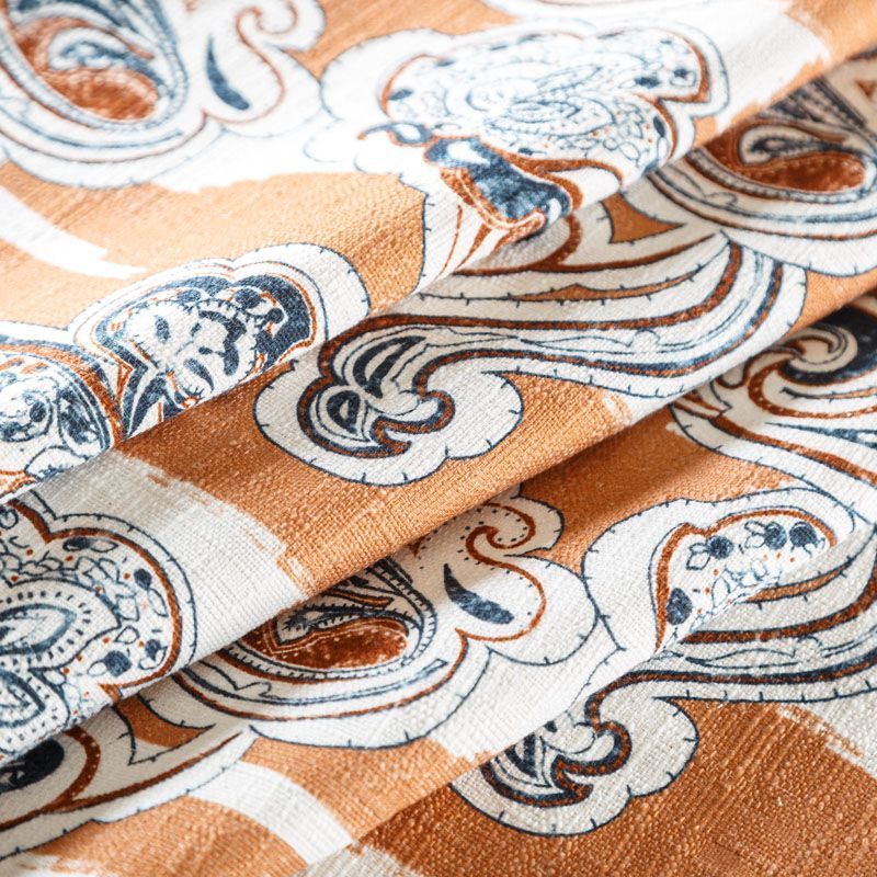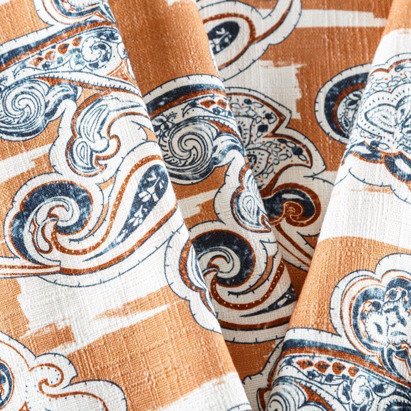 Итальянский костюмно-плательный лен с богатым принтом пейсли на коричневом фоне. Ткань прочная, имеет матовую рельефную поверхность и полотняное переплетение, отлично держит форму, пластичная, комфортная в изделии. Отлично подойдет для пошива для летних костюмов, рубашек, туник, платьев, сарафанов, юбок, жакетов, брюк или шорт.