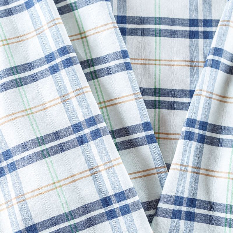 Льняная плательно-рубашечная ткань с добавлением полиэстера белого цвета с гоеметрическим принтом. Материал прочный, с выразительной матовой рельефной поверхностью, полотняным плетением, хорошо держит форму, мягкий на ощупь, пластичный, отлично драпируется. Прекрасно подойдет для пошива летних платьев, сарафанов, юбок, рубашек, брюк и шорт.