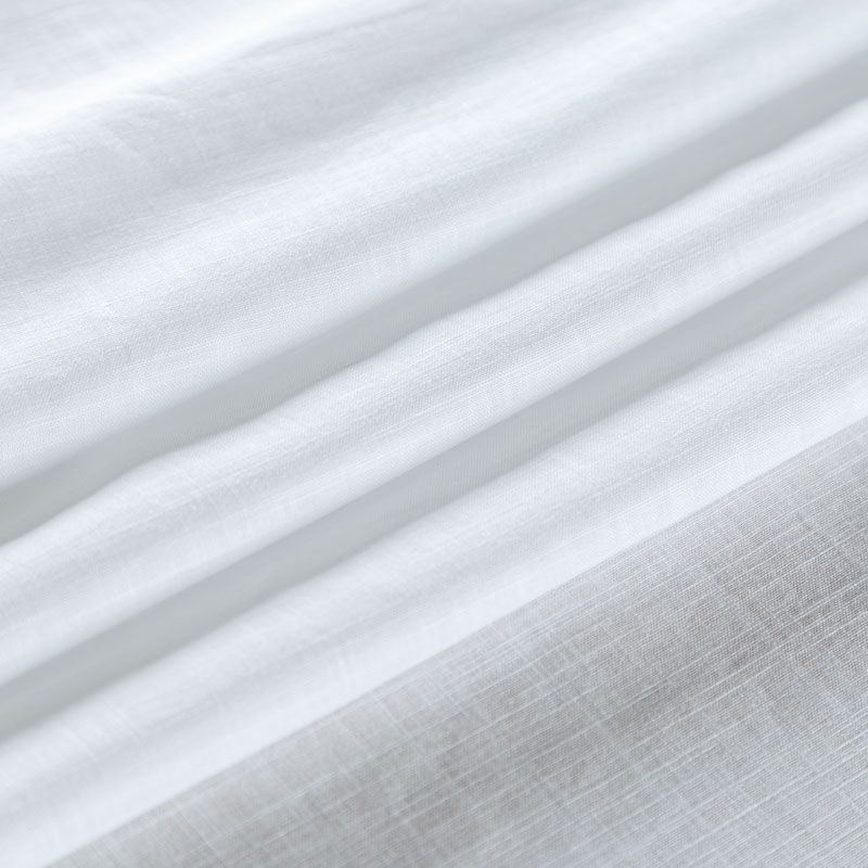 Итальянский плательно-рубашечный лен белого цвета. Ткань прочная, имееет на ощупь приятную, гладкую поверхность, а визуально - выраженный рельеф и полотняное переплетение, пластичная, хорошо драпируется, полупрозрачная. Подойдет для пошива широких брюк, рубашек, туники, юбок, платьев, сарафанов, топов, комбинезонов.