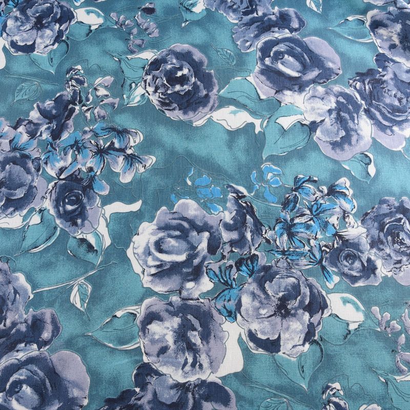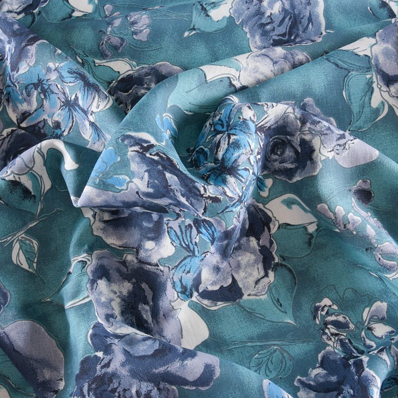 Лен натуральный 035-11767 темно-бирюзовый принтованный в Великих Луках