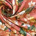 Лен натуральный К36-078 коралловый принтованный