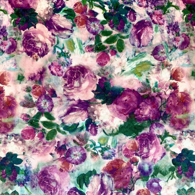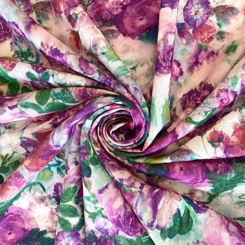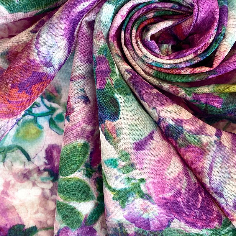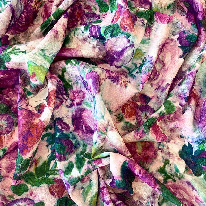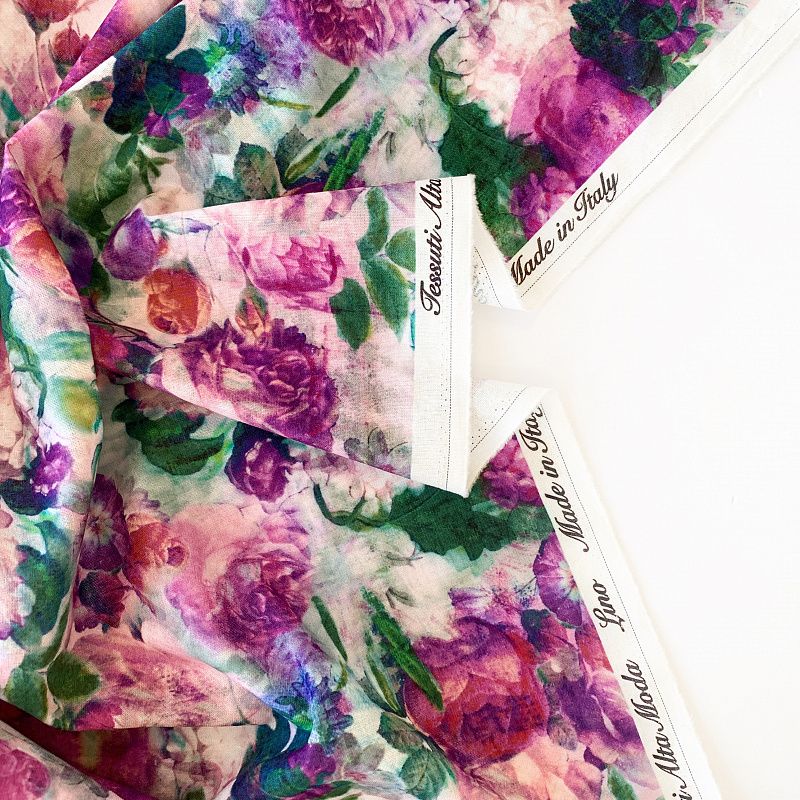 Прочный, выразительная матовая рельефная поверхность, полотняное переплетение, отлично держит форму, жестковатый на ощупь, но комфортный в изделии. Стильный вариант для летних пальто, платьев-футляров, сарафанов, юбок, жакетов, брюк или шорт. Льняная костюмно-плательная ткань с эффектным акварельным принтом в лиловых, зеленых и бирюзовых тонах.