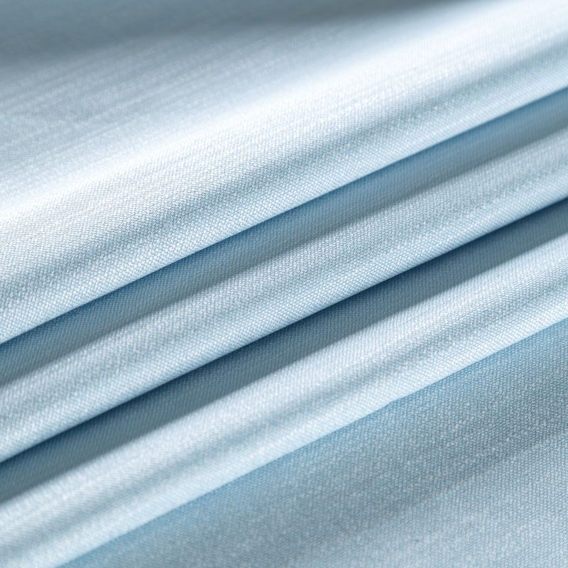 Итальянский плательно-костюмный лен с добавлением шелка в голубом оттенке. Материал имеет гладкую, шелковистую поверхность с едва заметным лоском, пластичный, хорошо драпируется. Ткань режется купоном по длине рулона, в нижней части купона материал декорирован мережкой, которая при крое может стать декоративным элементом в изделии. Лен подойдет для пошива платья, сарафана, жакета, юбки, брюк.