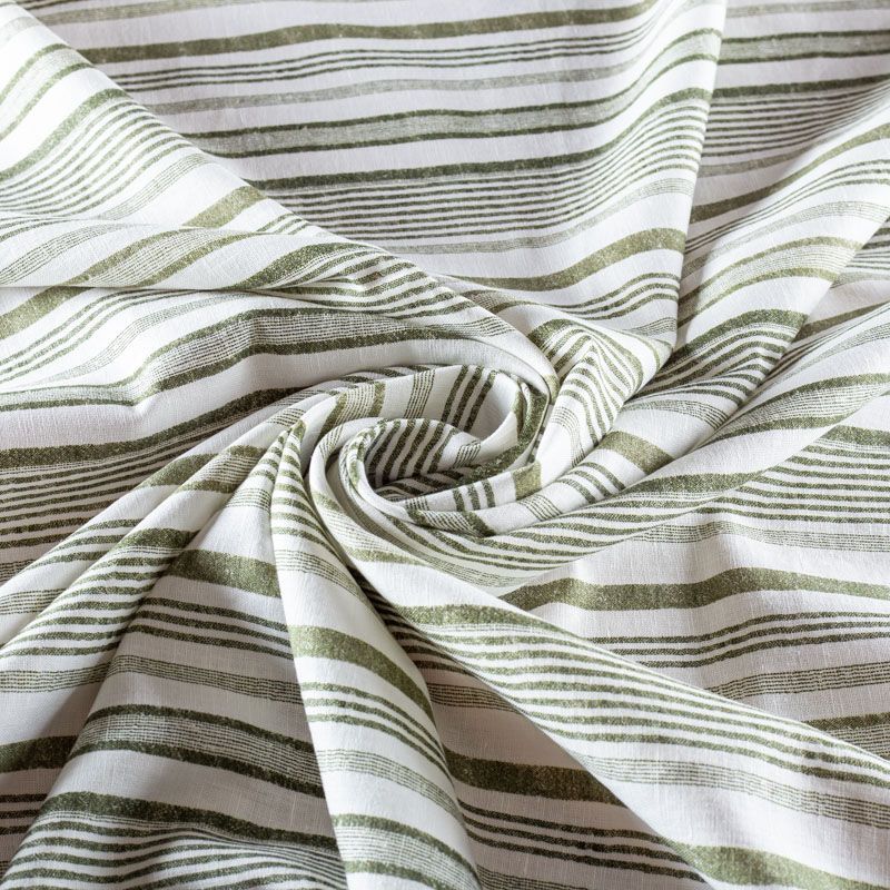 Итальянский лен с добавлением вискозы средней плотности с принтом в разноразмерную вертикальную полоску. Ткань прочная, имееет выразительную матовую рельефную поверхность и полотняное переплетение, хорошо держит форму. Подойдет для пошива весенне-летних костюмов, платьев, брюк, шорт, топов, сарафанов.