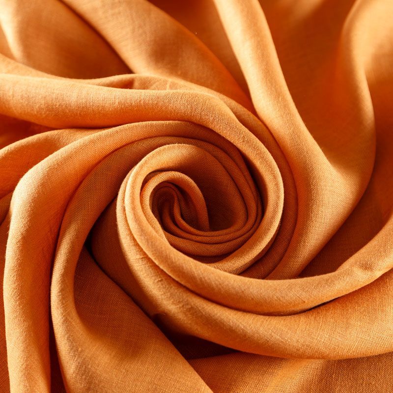 Итальянский костюмно-плательный лен с добавлением вискозы в пригкушенном оранжевом оттенке. Ткань прочная, имееет на ощупь приятную, гладкую поверхность, а визуально - выраженный рельеф и полотняное переплетение, держит форму, пластичная. Подойдет для пошива костюмов, брюк, шорт, юбок, платьев, сарафанов, топов, комбинезонов, жакетов, кардиганов.