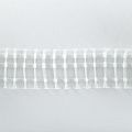 Шторная лента прозрачная для тюлей и портьерных тканей с карандашной сборкой. Сокращение - 1:2,5, раппорт - 25 см, 2 ряда непрозрачных белых кармашков, крепление - крючки.