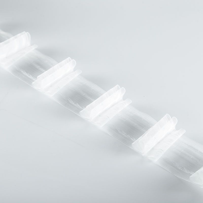Шторная лента полностью прозрачная для тюлей и портьерных тканей с 4-ой бантовой складкой. Сокращение - 1:3, раппорт - 24 см, расстояние между складками - 8 см, 2 ряда кармашков, крепление - крючки.