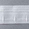 Шторная лента мягкая, не прозрачная для плотных тюлевых полотен и портьерных тканей c карандашной складкой. Сокращение - регулируемое, произвольное, 2 ряда белых текстильных кармашков, стягивается на 4 нитки, крепление - крючки.