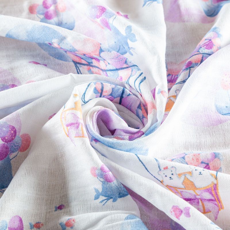 Хлопковый муслин полотняного переплетения, в котором нити утка и основы перекрывают друг друга на больших промежутках, поэтому ткань очень мягкая, легкая, частично прозрачная. Муслин используется для пошива подгузников, пелёнок, комплектов постельного белья для взрослых и детей, занавесок и пологов для детских кроваток, а также одежды.