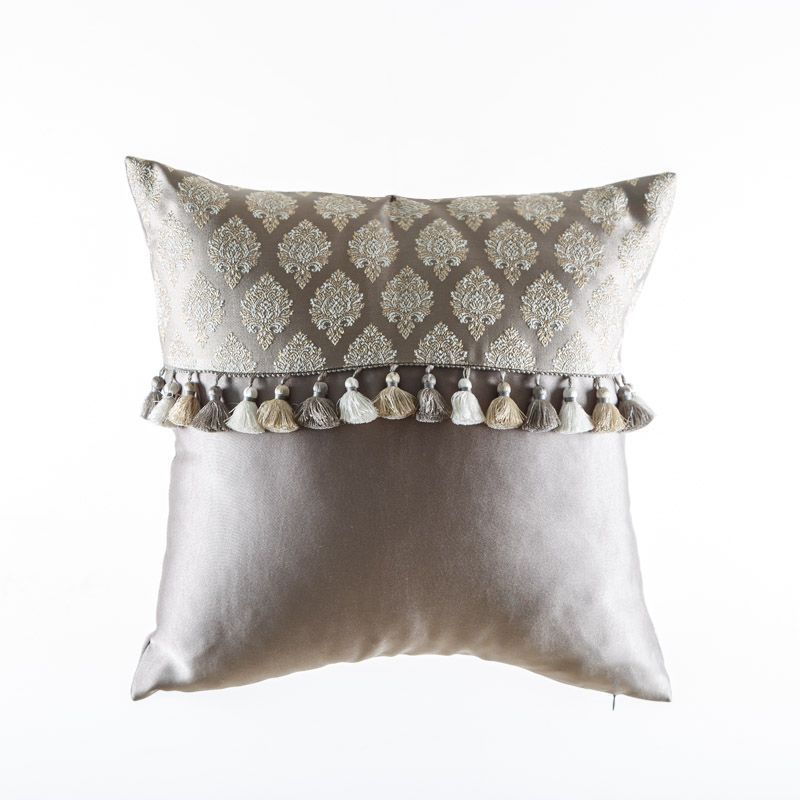 Оригинальная дизайнерская наволочка на подушку 45х45 см. Выполнена из бархата и жаккарда и декорирована бахромой. Потайная молния расположена в нижнем шве. Декоративные подушки сделают акцет на цветовой гамме Вашего помещения, подчеркнут особенности интерьерного стиля или тематику оформления. Внимание! Подушка-вкладыш или синтепон приобретаются отдельно.