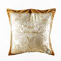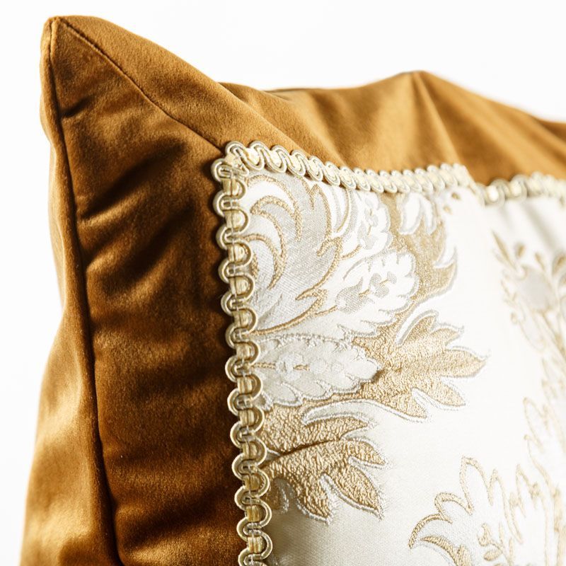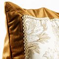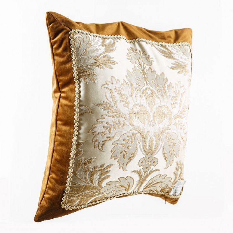 Оригинальная дизайнерская наволочка на подушку 50х50 см. Лицевая сторона декорирована вставкой из жаккардовой ткани в бежево-золотистых оттенках с классическим "дамаском" и оформлена тесьмой в тон. Обратная сторона - мягкий и шелковистый на ощупь бархат коричневого оттенка. Потайная молния расположена в нижнем шве. Декоративные подушки сделают акцет на цветовой гамме Вашего помещения, подчеркнут особенности интерьерного стиля или тематику оформления. Внимание! Подушка-вкладыш приобретается отдельно.