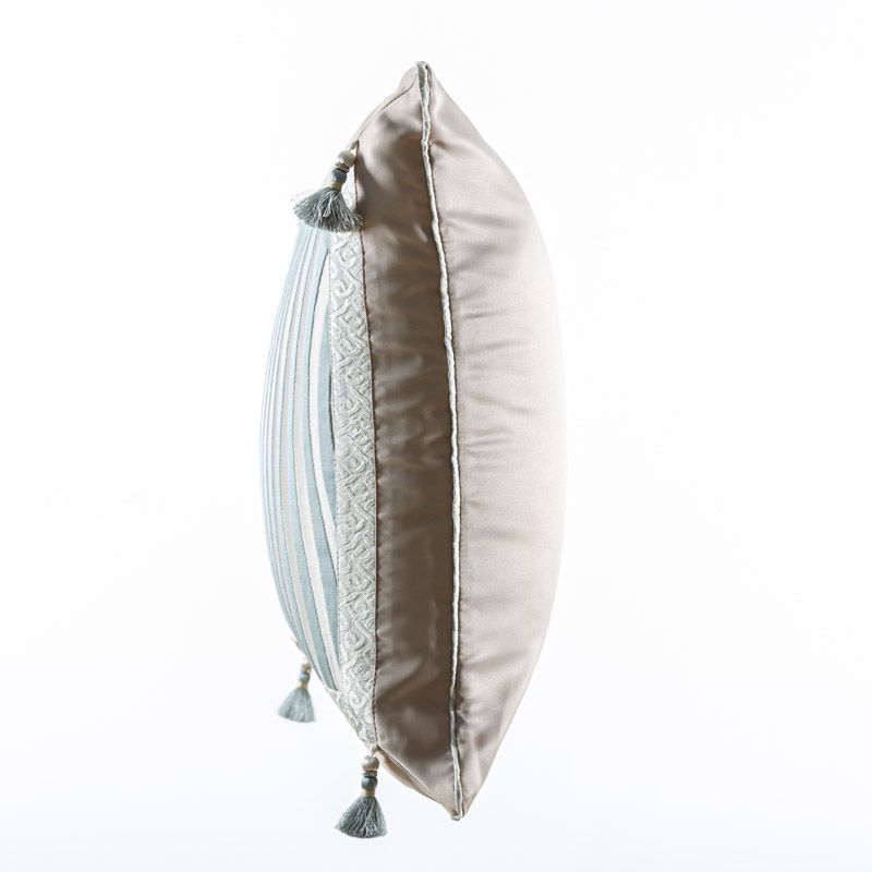 Оригинальная дизайнерская наволочка на подушку 50х50 см. Выполнена из сатина и жаккарда и декорирована тесьмой, кантом и кисточками. Потайная молния расположена в нижнем шве. Декоративные подушки сделают акцет на цветовой гамме Вашего помещения, подчеркнут особенности интерьерного стиля или тематику оформления. Внимание! Подушка-вкладыш или синтепон приобретаются отдельно.