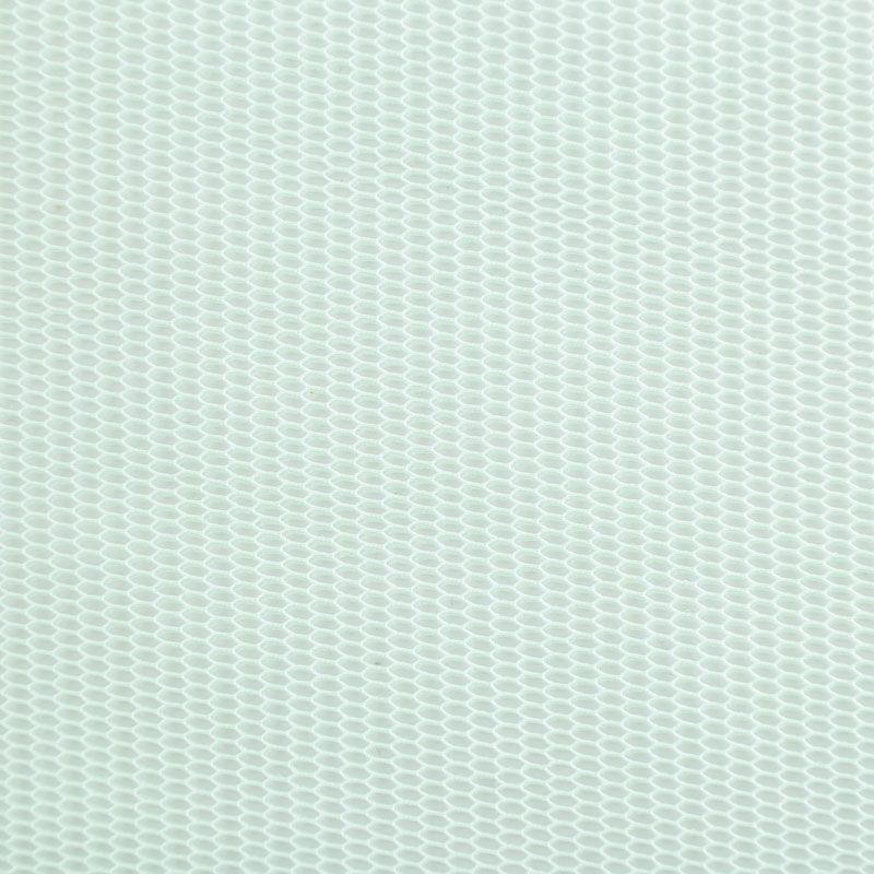 Объемный, эластичный материал мятного оттенка, состоящий из двойной мелкой сетки, по форме напоминающей соты. Упругое, мягкое с полупрозрачной фактурой полотно, пластичное и довольно прочное. Хорошо тянется, легкое и комфортное. Отлично держит форму. Рекомендуется для пошива объемных изделий или элементов: эксклюзивного жакета, бомбера, платья, юбки.