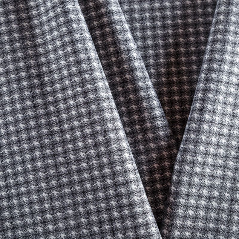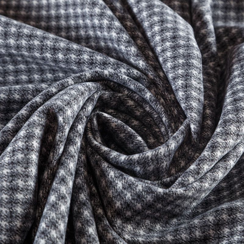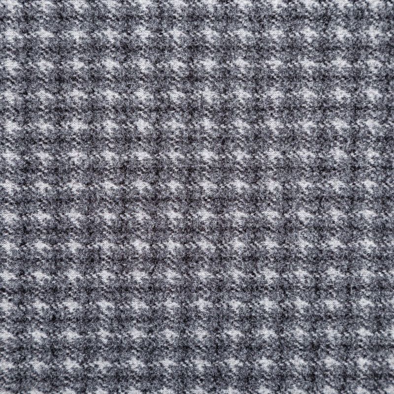 Плотный пальтовый трикотаж серого оттенка в мелкую черно-белую клеточку. Ткань очень приятная на ощупь, мягкая, пластичная, теплая и уютная. Прекрасно подойдет для пошива легких пальто, теплых жакетов, курток, кардиганов, юбок или шорт.