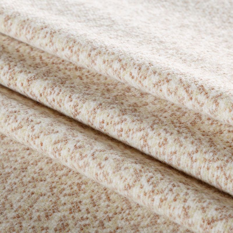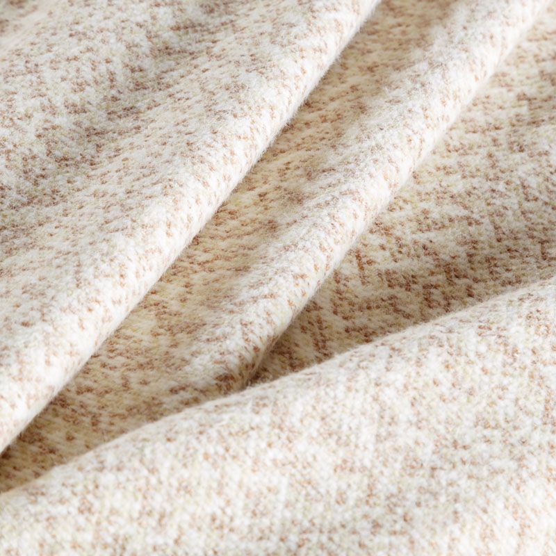 Плотный двухслойный пальтовый трикотаж белого цвета с абстрактным орнаментом в зеленовато-коричневой гамме. Ткань очень приятная на ощупь, пластичная, теплая и уютная, поверхность слегка буклированная и мягкая. Изнанка однотонная молочного оттенка. Прекрасно подойдет для  пошива пальто, теплых жакетов, курток, кардиганов, костюмов.