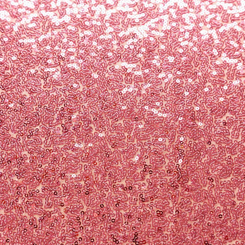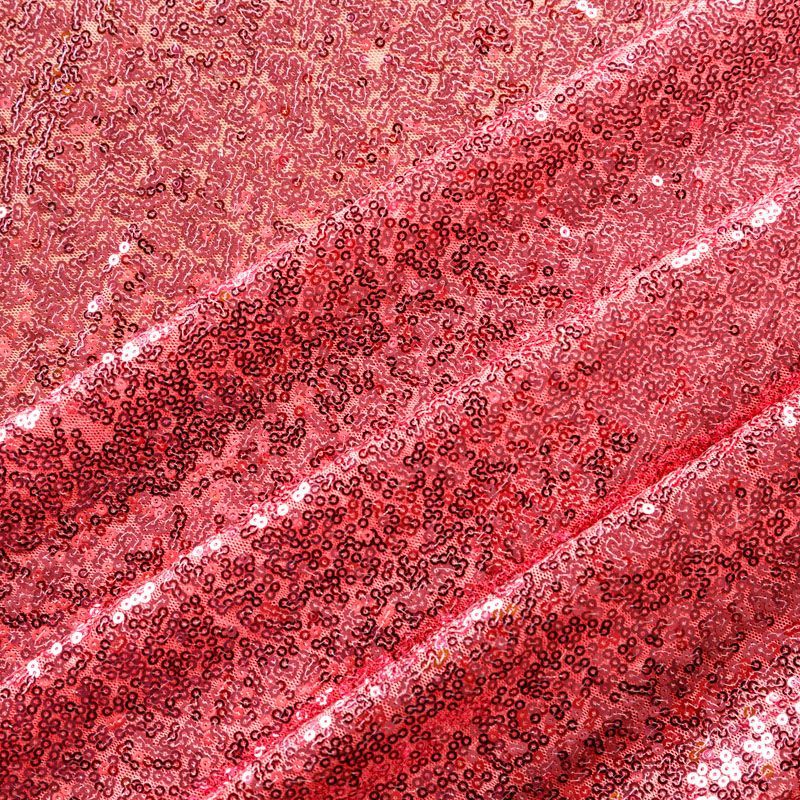 Блестящие пайетки в клубничном оттенке. Мелкие, размером около 3 мм, расположены в хаотичном порядке. Основа - мягкая и эластичная сетка.  Ткань полупрозрачная, может потребоваться подклад. Подойдет для вечернего, коктейльного платья, юбки, нарядных детских изделий, танцевальных и сценических костюмов.