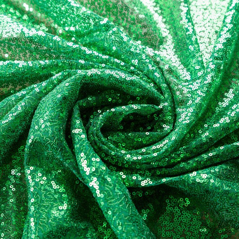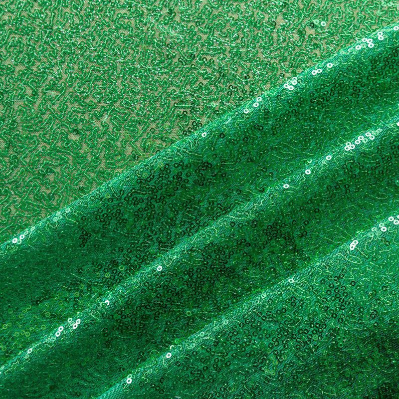 Блестящие пайетки в зеленом оттенке. Мелкие, размером около 3 мм, расположены в хаотичном порядке. Основа - мягкая и эластичная сетка. Ткань полупрозрачная, может потребоваться подклад. Подойдет для вечернего, коктейльного платья, юбки, нарядных детских изделий, танцевальных и сценических костюмов.