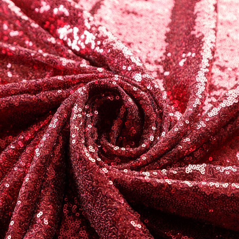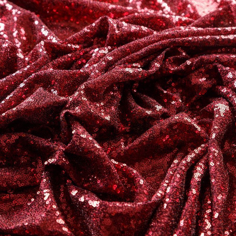 Блестящие пайетки в бордовом оттенке. Мелкие, размером около 3 мм, расположены в хаотичном порядке. Основа - мягкая и эластичная сетка.  Ткань полупрозрачная, может потребоваться подклад. Подойдет для вечернего, коктейльного платья, юбки, нарядных детских изделий, танцевальных и сценических костюмов.