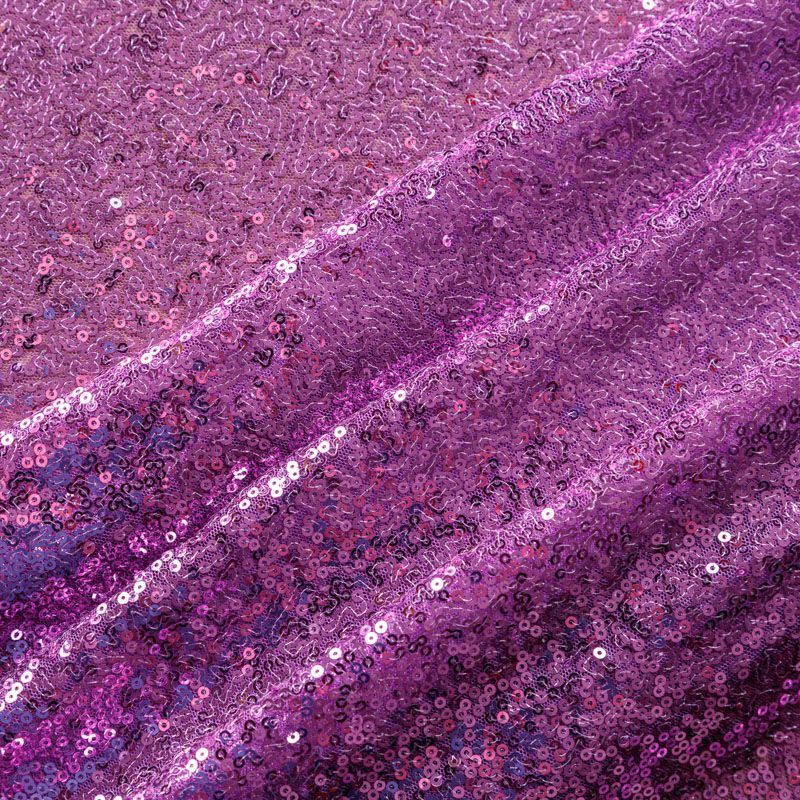 Блестящие пайетки в сиреневом оттенке. Мелкие, размером около 3 мм, расположены в хаотичном порядке. Основа - мягкая и эластичная сетка. Ткань полупрозрачная, может потребоваться подклад. Подойдет для вечернего, коктейльного платья, юбки, нарядных детских изделий, танцевальных и сценических костюмов.