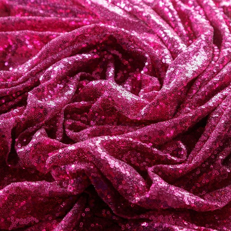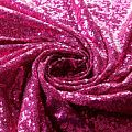 Блестящие пайетки в ярком розовом оттенке. Мелкие, размером около 3 мм, расположены в хаотичном порядке. Основа - мягкая и эластичная сетка.  Ткань полупрозрачная, может потребоваться подклад. Подойдет для вечернего, коктейльного платья, юбки, нарядных детских изделий, танцевальных и сценических костюмов.