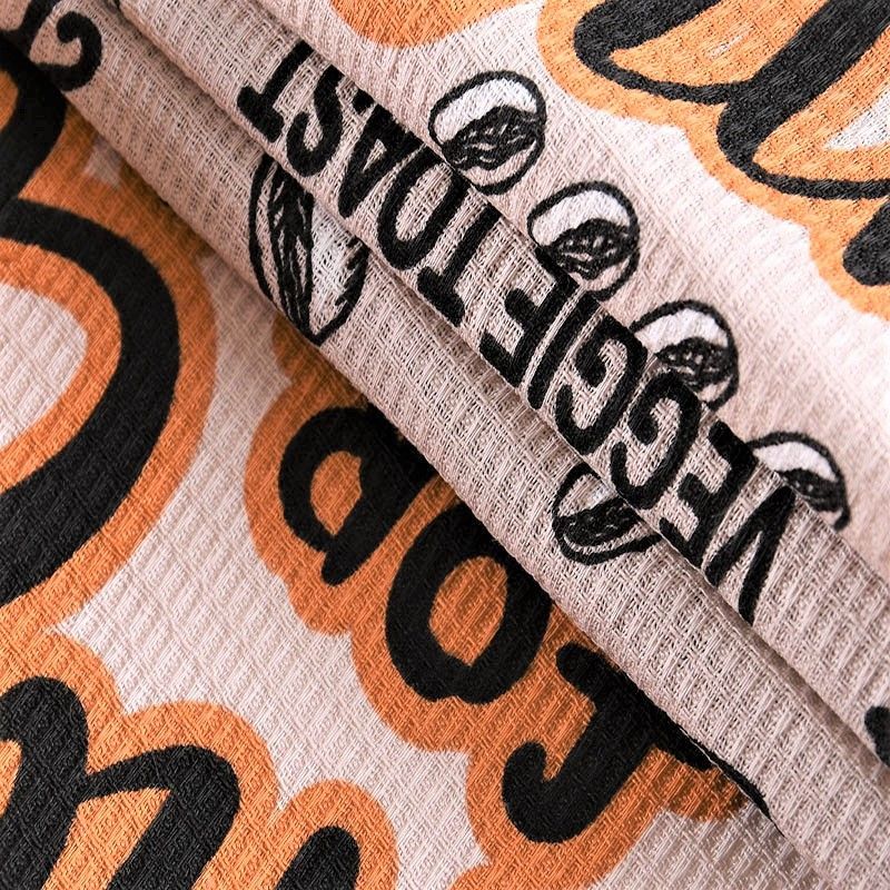 Полотно вафельное 007-11023 бежевый принтованный
