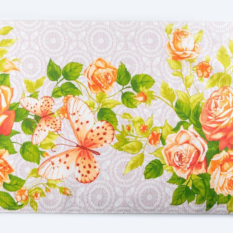 Качественная натуральная хлопчатобумажная ткань, обладающая высокой гигроскопичностью, с ярким цветочным принтом. Универсальный материал, из которого шьют кухонные полотенца, скатерти, прихватки, салфетки.