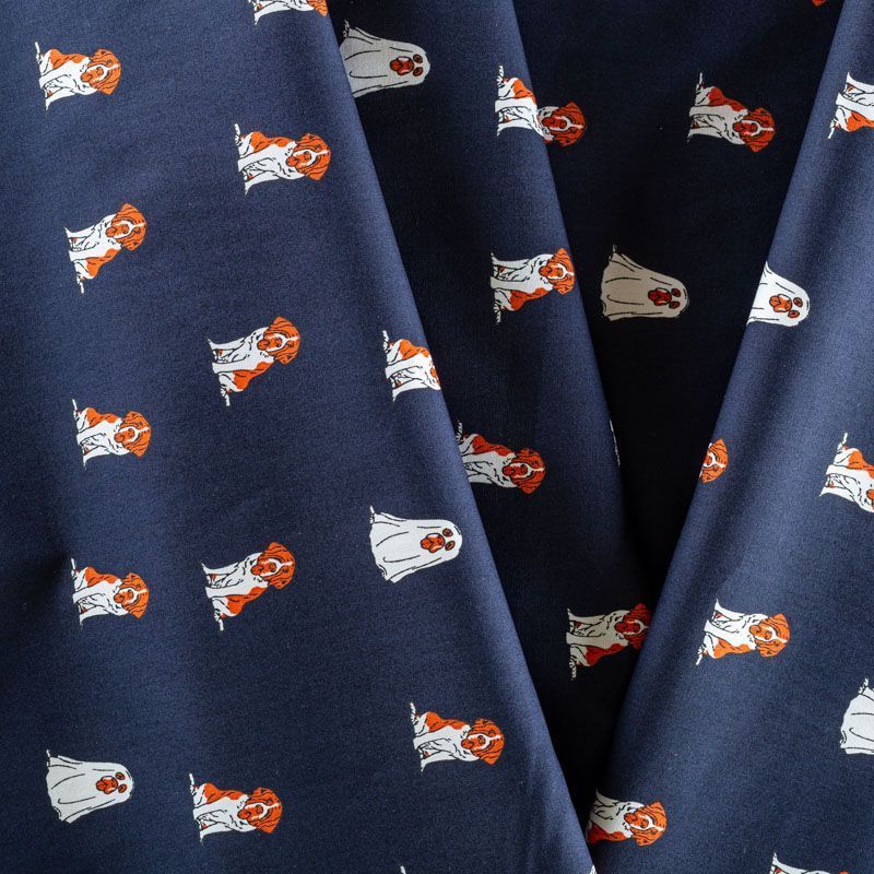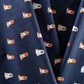 Плательно-рубашечный хлопковый поплин темно-синего оттенка с милым стилизованным принтом. Ткань лёгкая, не прозрачная, поверхность матовая, гладкая, приятная к телу, хорошо драпируется, тянется за счет эластана в составе. Прекрасно подойдет рубашки, блузы, платья-рубашки, летнего сарафана, туники, юбки.