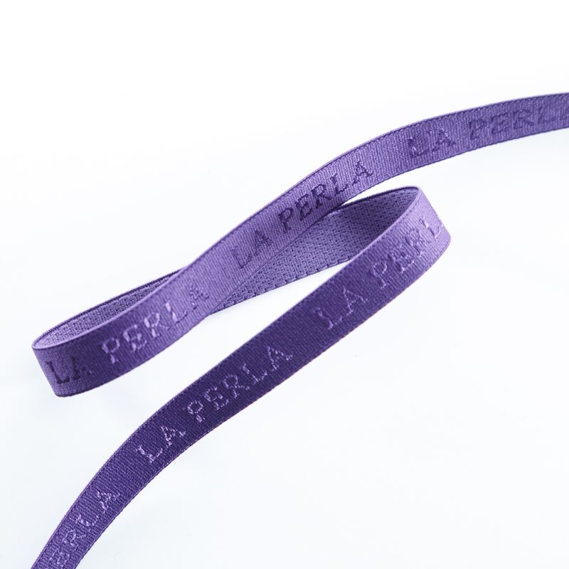 Бретелечная резинка используется для обработки стана бюстгальтера, а также для бретелей. Матовая с жаккардовой надписью бренда. Края ровные.