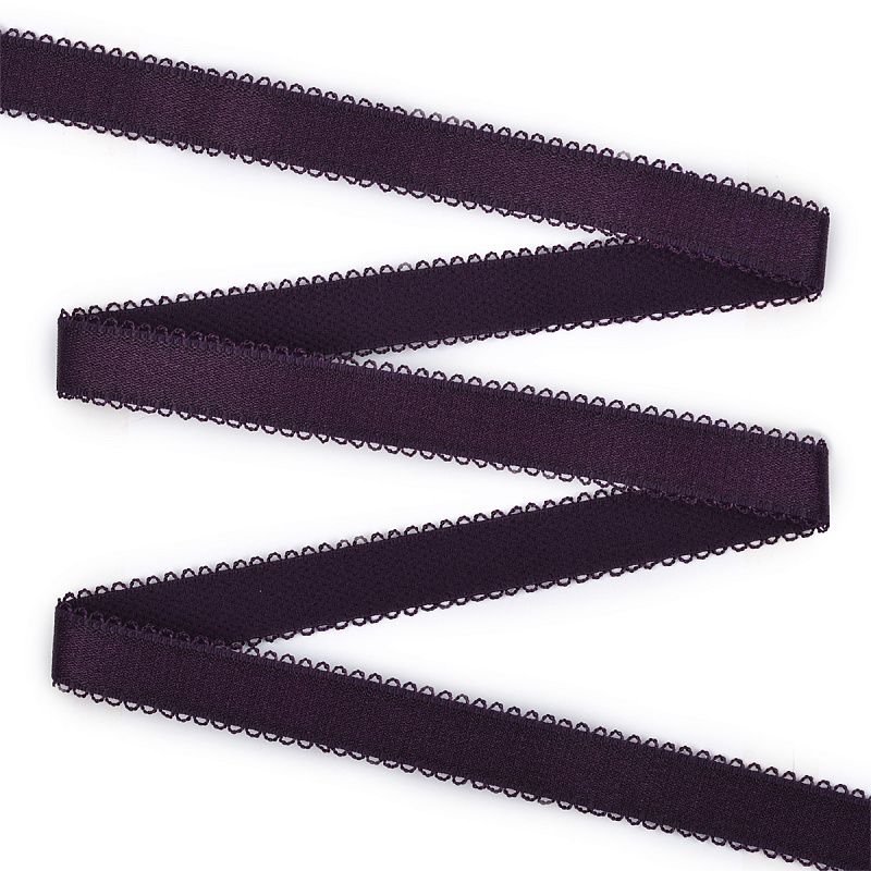 Классическая бретелечная резинка используется для обработки стана бюстгальтера, а также для бретелей. Края фигурные, блестящая. Плотность 12 ± 0.3 г/м. Растяжимость 55 ± 10 %.