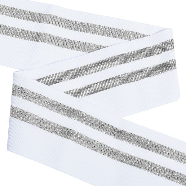 Резинка TBY 50 мм в рубчик с двумя полосками RDG-250WHS серебро/белый