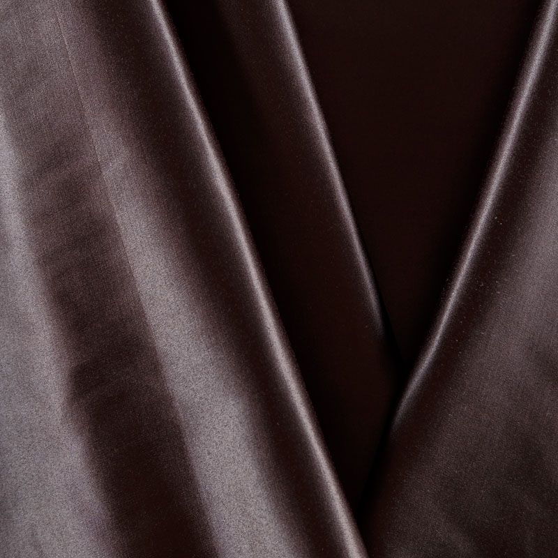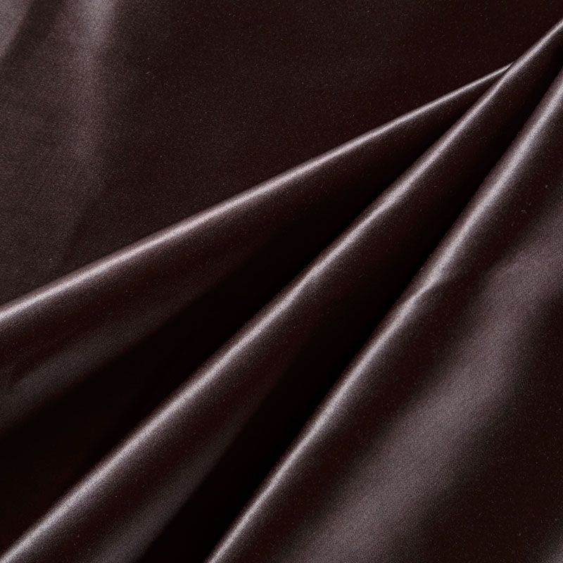 Итальянский сатин-коттон средней плотности в темно-шоколадном оттенке. Поверхность ткань гладкая, с благородным блеском. Материал хорошо держит форму и драпируется, тянется за счет эластана в составе. Подойдет для пошива нарядных костюмов, платьев, жакета, юбки, брюк или шорт.