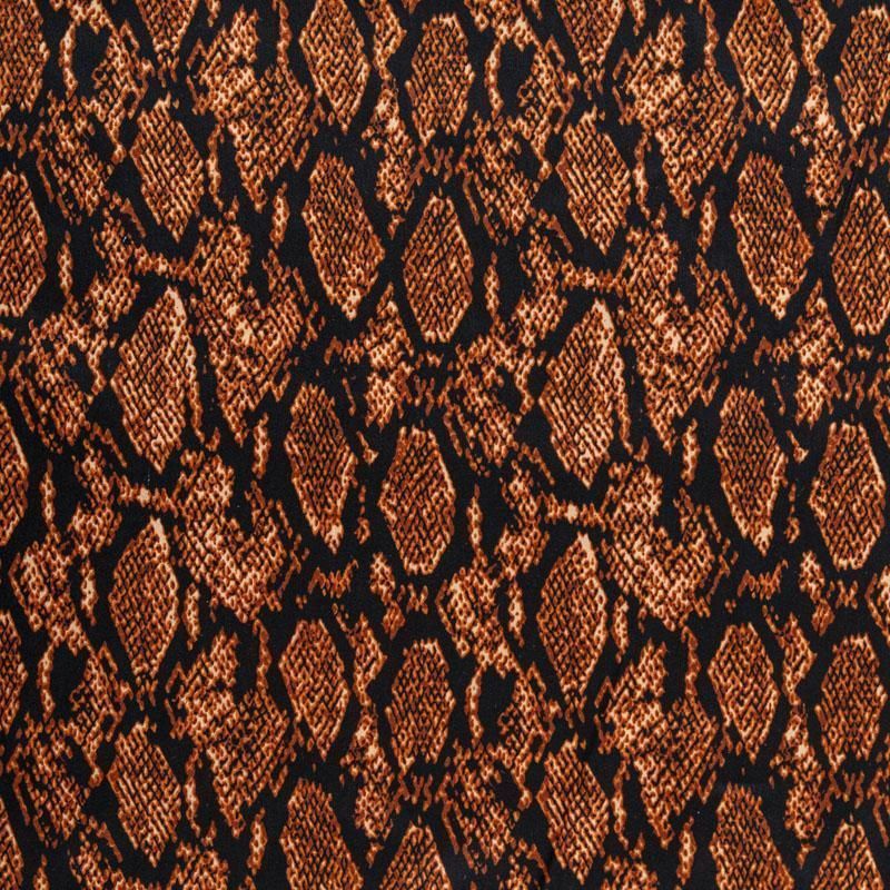 Сатин-коттон черного цвета со стилизованным анималистическим принтом, с гладкой поверхностью со сдержанным блеском, ткань средней плотности,  не толстая, хорошо держит форму, тянется за счет эластана в составе. Подойдет для пошива костюма, жакета, юбки, платья, брюк или шорт.