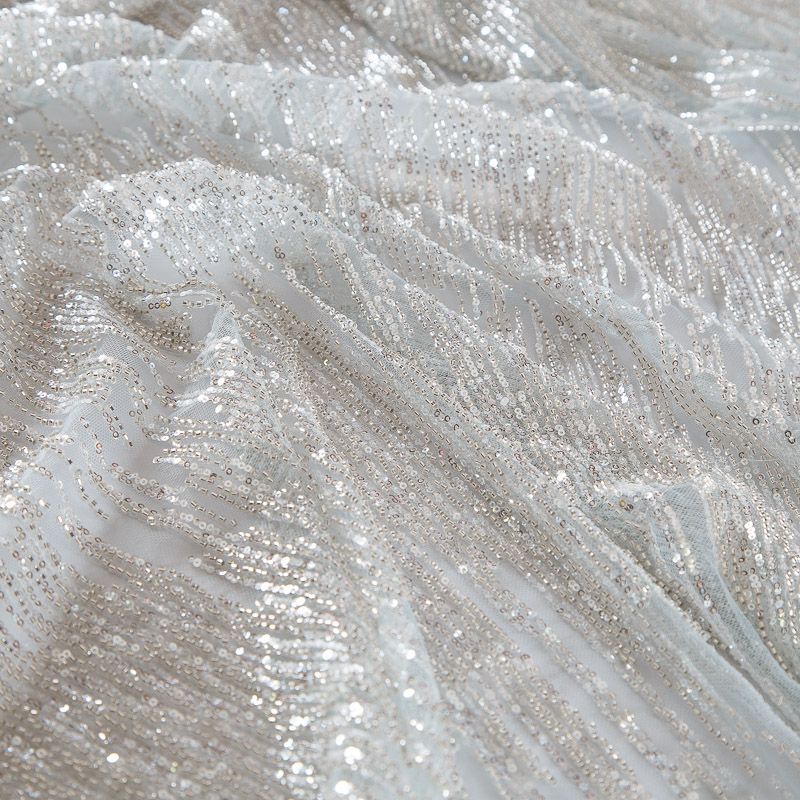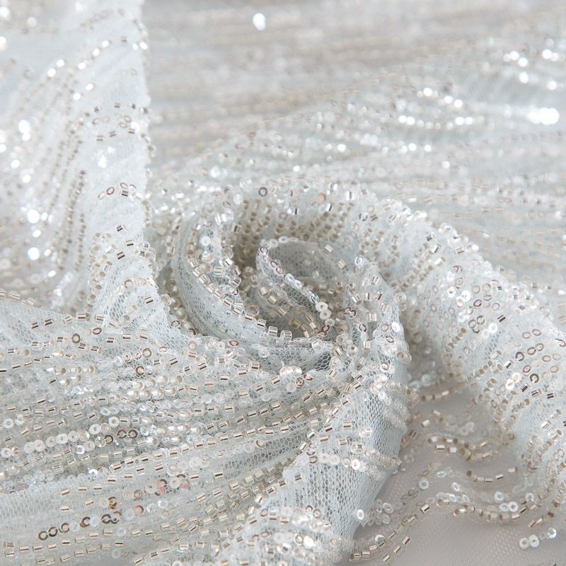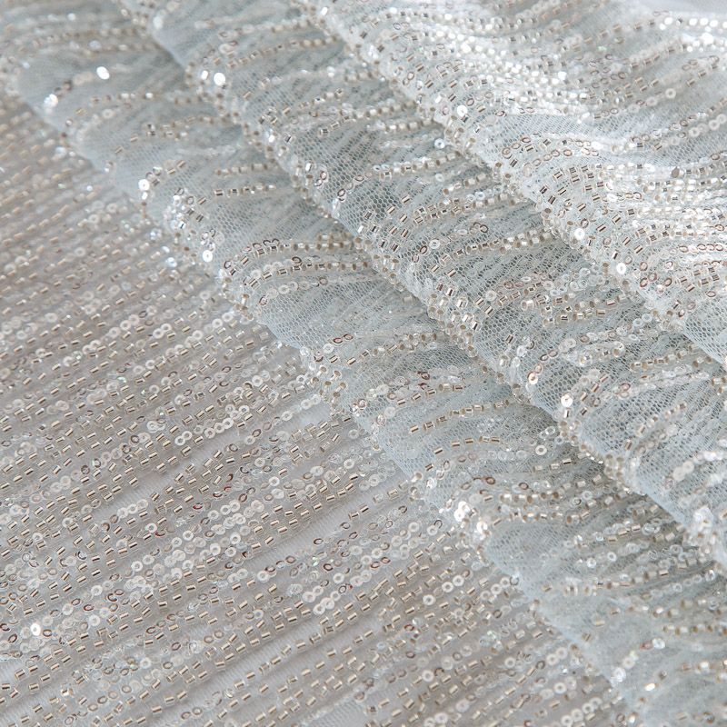 Сетка с бисером и пайетками 050-17616 разбеленный голубой