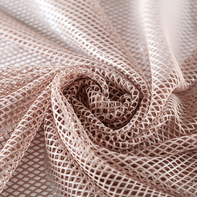Рельефный полупрозрачный материал с сетчатой структурой. Поверхность полотна с металлизированным напылением, которое придает материалу легкий блеск и мерцание. Полотно мягкое, растяжимое во всех направлениях. Сетки нашли свое применение в процессе пошива и последующего декора вечерних нарядов, свадебных платьев, спортивной одежды, театральных костюмов..