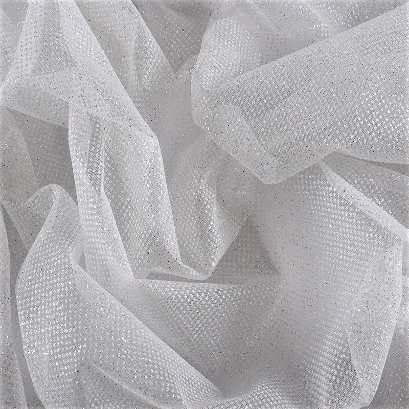 Рельефный прозрачный материал с сетчатой структурой. Поверхность полотна с металлизорованным глиттером, который придает материалу блеск и мерцание. Полотно жесткое, не тянется, отлично держит форму. Сетки нашли свое применение в процессе пошива и последующего декора вечерних нарядов, свадебных платьев, спортивной одежды, театральных костюмов.