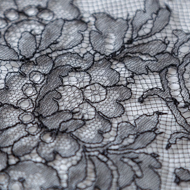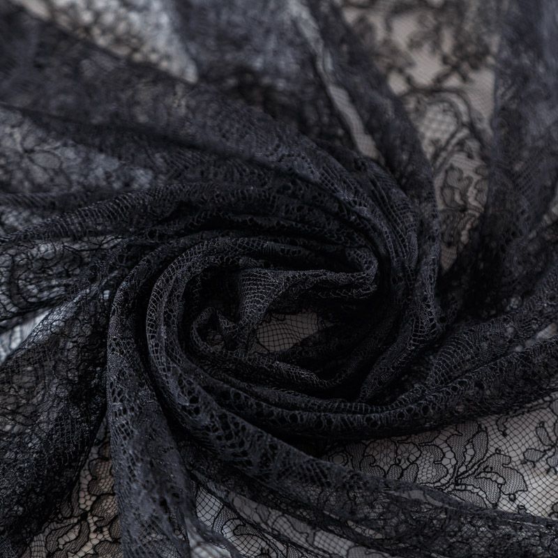 Французское шантильи черного цвета имеет тончайшее плетение волокон и состоит из нежнейшего кружева, которое используется для пошива свадебных нарядов, праздничных платьев. Вставки из кружева украсят любой офисный костюм, повседневное платье, юбку, блузу. Обе кромки кружева украшены фигурными фестонами.