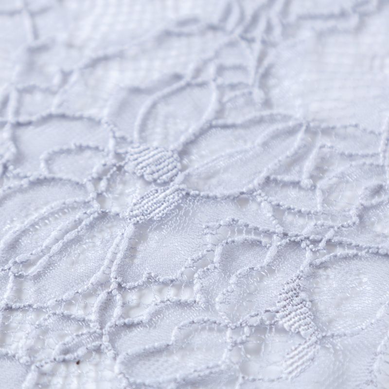 Французское шантильи светло-серого оттенка имеет тончайшее плетение волокон и состоит из нежнейшего кружева, которое используется для пошива свадебных нарядов, праздничных платьев. Вставки из кружева украсят любой офисный костюм, повседневное платье, юбку, блузу. Обе кромки кружева украшены фигурными фестонами. Наирается на изделие объемом.