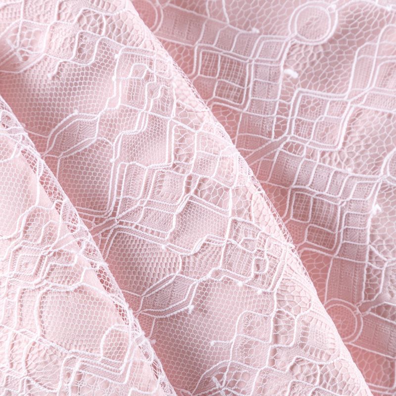 Французское шантильи нежно-розового оттенка имеет тончайшее плетение волокон и состоит из нежнейшего кружева, которое используется для пошива свадебных нарядов, праздничных платьев. Вставки из кружева украсят любой офисный костюм, повседневное платье, юбку, блузу. Обе кромки кружева украшены фигурными фестонами. Наирается на изделие объемом.