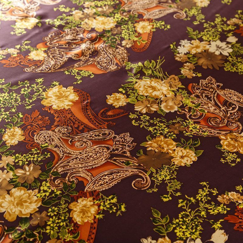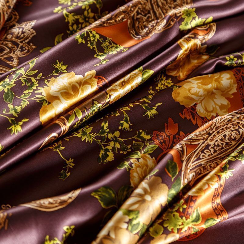 Итальянский атласный шелк с растительным принтом на бордово-сливовом фоне. Ткань тонкая, не просвечивает, отлично драпируется, легкая и струящаяся. Идеально подойдет для пошива платьев и сарафанов расклешенных моделей, с воланами, летящих юбок, топов, блузки, костюма в пижамном стиле.