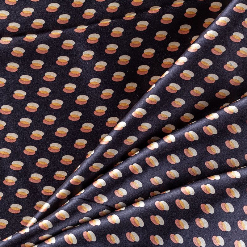 Натуральный шелк с атласной поверхностью, легкий, струящийся, хорошо драпируется. Универсальный принт выполнен в ярких оттенках, который будет уместен для пошива летнего сарафана, платья, блузки, костюма в пижамном стиле, широких брюк или юбки.