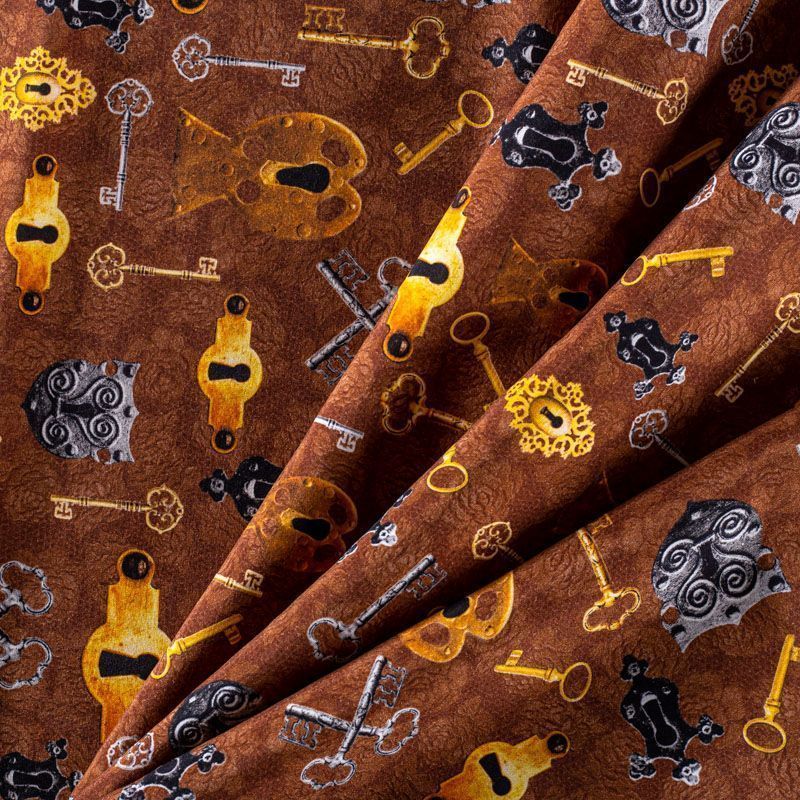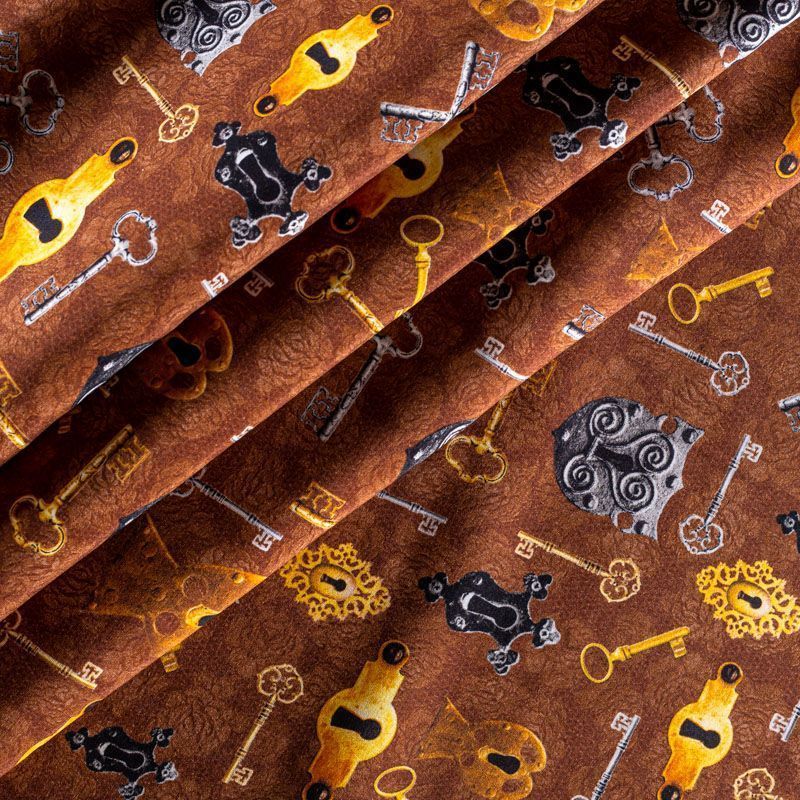 Итальянский матовый шелк коричневого оттенка с узнаваемым принтом от известного бренда. Ткань тонкая, не просвечивается, отлично драпируется, легкая и струящаяся, тянется за счет эластана в составе, лицевая сторона креповая, изнанка - атласная. Идеально подойдет для пошива платьев и сарафанов расклешенных моделей, с воланами, рюшами, летящих юбок, топов, блузки, рубашки, костюма в пижамном стиле.