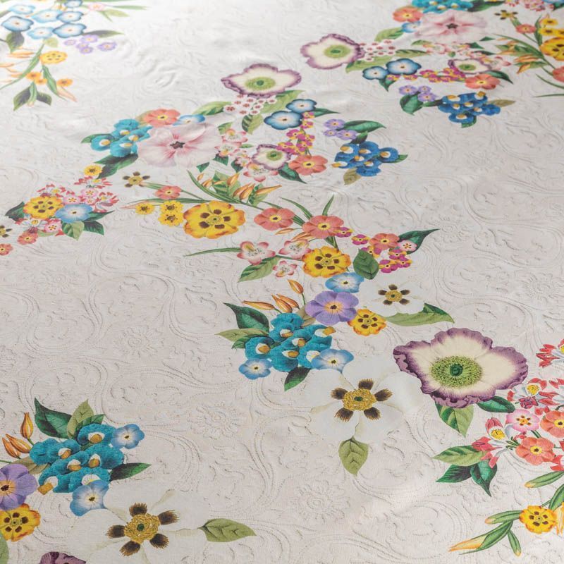 Итальянский атласный шелк с ярким цветочным принтом на фоне, имитурующем жаккардовый узор. Ткань средней плотности, не просвечивает, струится, хорошо драпируется. Поверхность гляпдкая, имеет благородный сатиновый блеск.  Подойдет для летних платьев накидок, юбок, блузок, костюмов, широких брюк, домашней одежды.