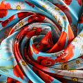 Итальянский атласный шелк, дизайн которого вдохновлен образом из коллекции известного бренда. На небесно-голубом фоне здесь - лаконичный и очень летний рисунок в виде ромашек и красных маков. Ткань средней плотности, не просвечивает, струится, хорошо драпируется. Поверхность глядкая, имеет благородный сатиновый блеск. Подойдет для летних платьев, накидок, юбок, блузок, костюмов, широких брюк, домашней одежды.