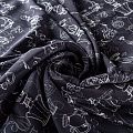 Итальянский матовый шелк черного цвета с узнаваемым принтом. Ткань тонкая, не просвечивается, отлично драпируется, легкая и струящаяся, тянется за счет эластана в составе, лицевая сторона креповая, изнанка - атласная. Идеально подойдет для пошива платьев и сарафанов расклешенных моделей, с воланами, рюшами, летящих юбок, топов, блузки, рубашки, костюма в пижамном стиле.