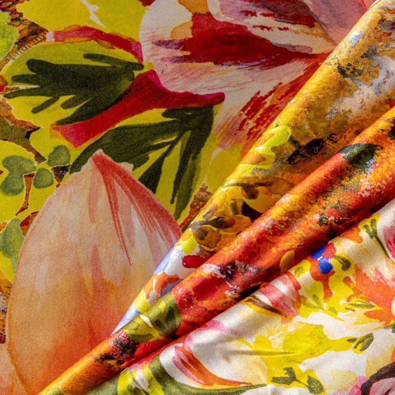 Итальянский натуральный шелк с атласной поверхностью, легкий, струящийся, хорошо драпируется, тянется за счет эластана в составе. Сочетание актуальных в текущем сезоне цветочного и анималистического принтов в насыщенных оттенках будет уместно  для пошива летнего сарафана, платья, блузки, костюма в пижамном стиле, широких брюк или юбки.