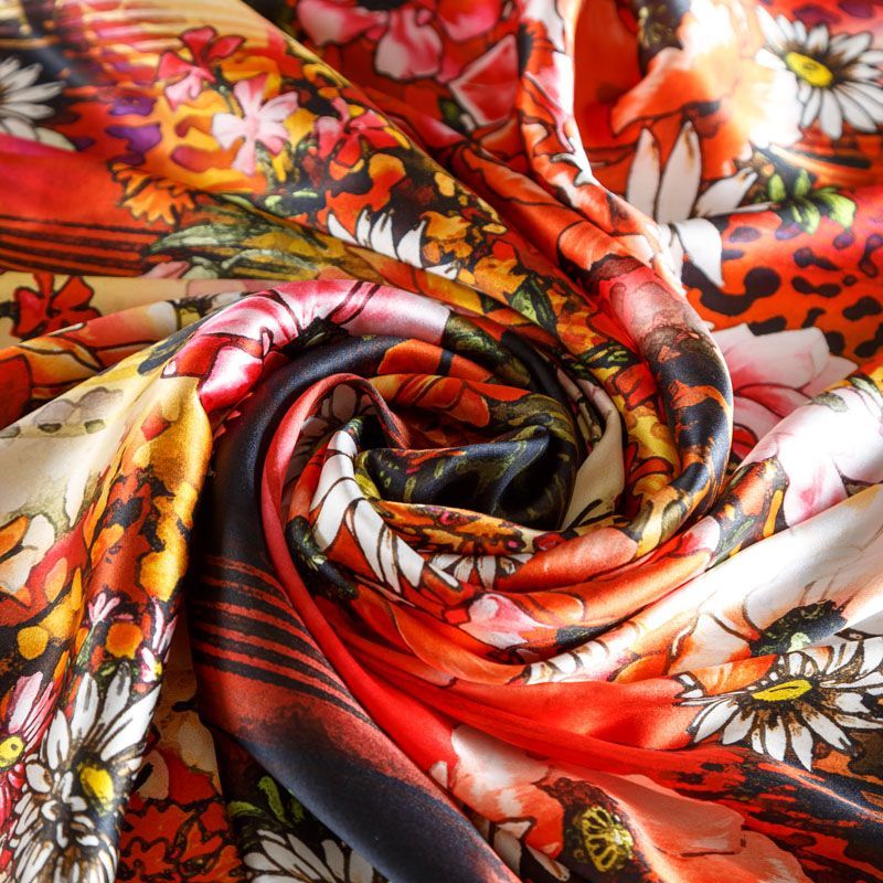 Шелк натуральный К23-178 красный принтованный в Великих Луках