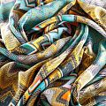 Шелк натуральный К24-015 бирюзовый принтованный