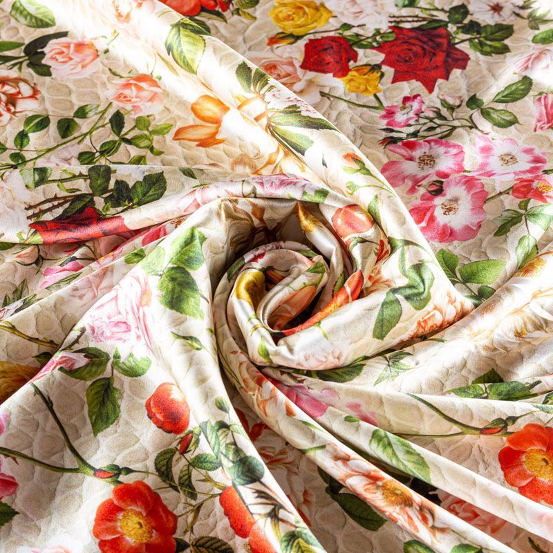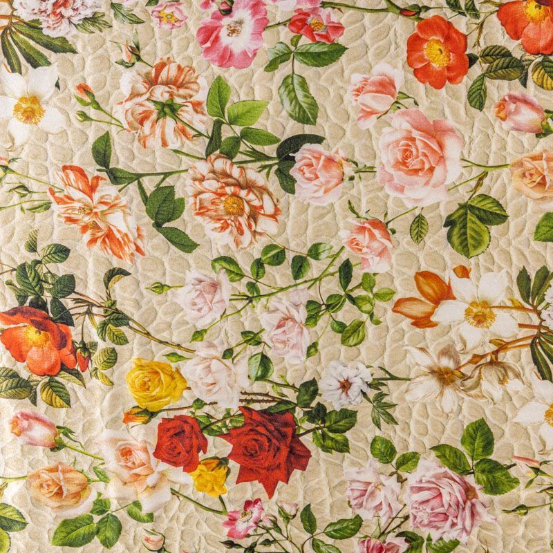 Итальянский атласный шелк с цветочным принтом на светло-оливковом фоне, имитирующем фактурную поверхность, тонкий, слегка прозрачный, отлично драпируется,  легкий и струящийся. Идеально подойдет для пошива платьев и сарафанов расклешенных моделей, с воланами, летящих юбок, топов, блузки, костюма в пижамном стиле.
